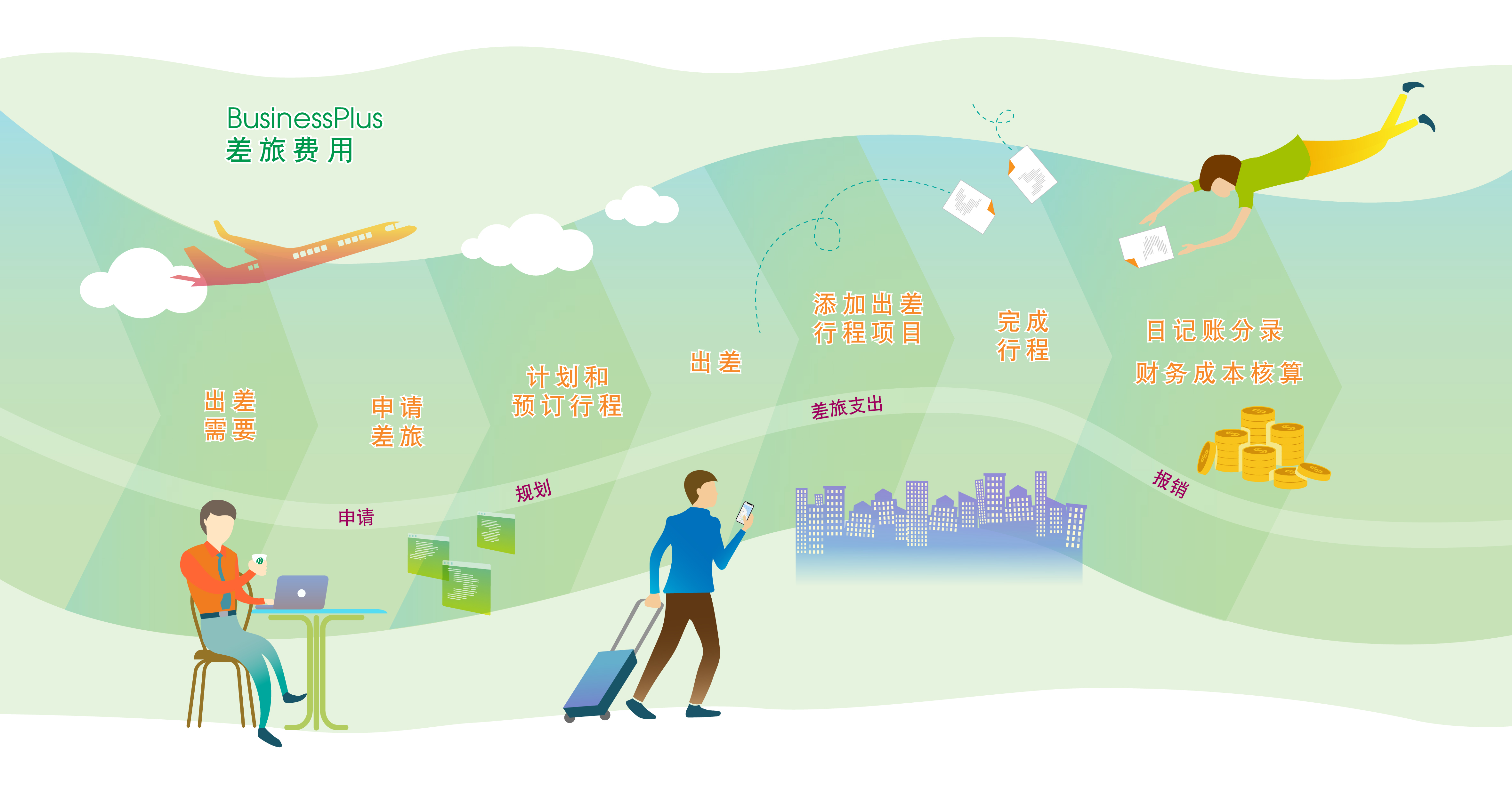 BusinessPlus费用管理系统能为企业提供基于网页和原生移动APP的平台,简化从在线费用申请到上级审批再到财务分析的整个费用报销流程。通过对一般费用、差旅费和付款申请的分类帮助员工自助服务的同时,管理员可以控制主要由员工发起的支出。BusinessPlus费用管理系统除了能对接总账和应付账款,所有支出还能分别于项目编号和成本中心相关联。
